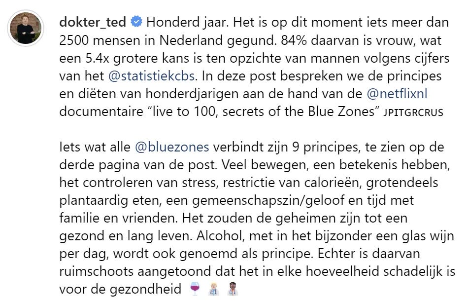 Hier leutert hij wat over Blue Zones. Deze uitspraken zijn gebaseerd op mythes12