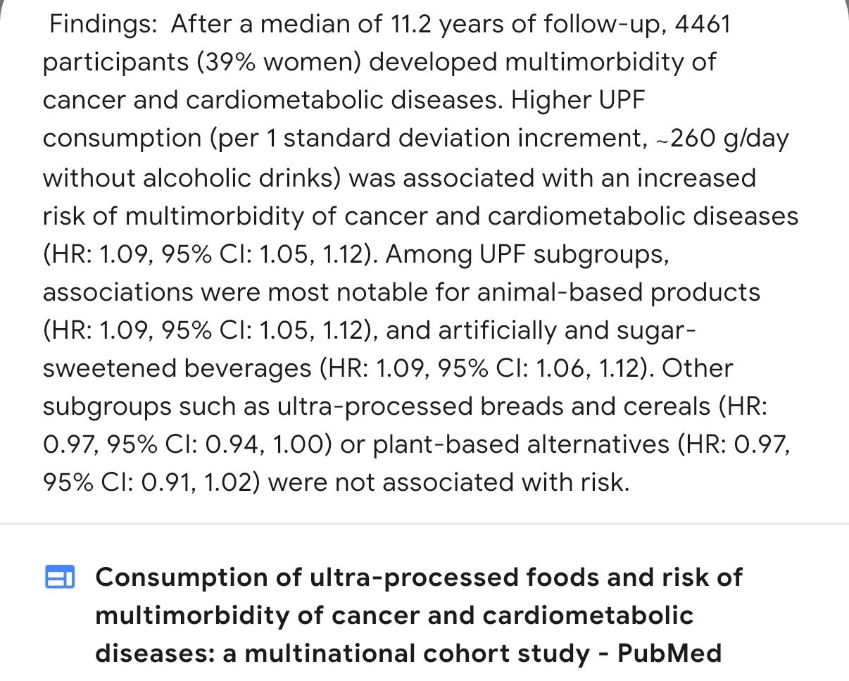 Hier begin ik mee om vooral te benadrukken: het gaat om het soort ultrabewerkt voedsel dat wordt gegeten én het totale plaatje, dat de gezondheidsuitkomsten bepaalt.