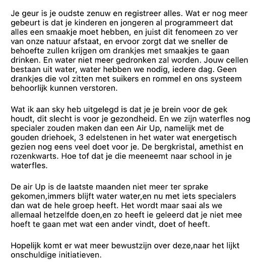 Dat iemand gelooft in chakra’s is dan wel niet direct funest, maar door alle van de wetenschap losgezongen quatsch lijkt Instagram langzaamaan een broeinest te worden ideeën die wel schadelijk zijn, zoals dat vaccins en zonnebrand slecht zijn. Orthomoleculaire Otto’s geloven ook dat bijvoorbeeld kanker je eigen schuld is. Sowieso is het gedachtengoed dat je helemaal zelf het stuur in handen kan hebben van je gezondheid en levenspad, bij uitstek een USP voor moderne goeroes. Het enige wat je moet doen is hen duizenden euro’s betalen en zij zeggen je waar dit denkbeeldige stuur dan exact zit.