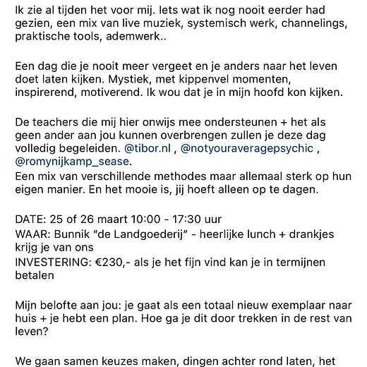 Daarbij hoor ik over spirituele goeroes vaak dat hun praktijken geen kwaad kunnen, want het enige wat ze doen is een beetje praten, enzo. Dat valt denk ik te betwijfelen. Als jij met psychische problemen kampt, iemand zegt tegen je dat je gewoon je beste leven moet manifesteren en dat werkt ook niet, kun je nog meer in de knel raken. ‘Ligt het dan toch aan mij?’ En dan kan de reguliere zorg zich daar weer over ontfermen.