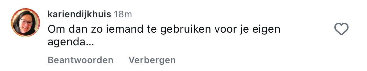 Begin vooral met deze reactie van Jorn Luka, een als kritische denker vermomde streep naadvocht met een podcast voor ““““andersdenkenden””””. Die tien minuten nadat ik de brief op Instagram had gepost, dit plaatste:
